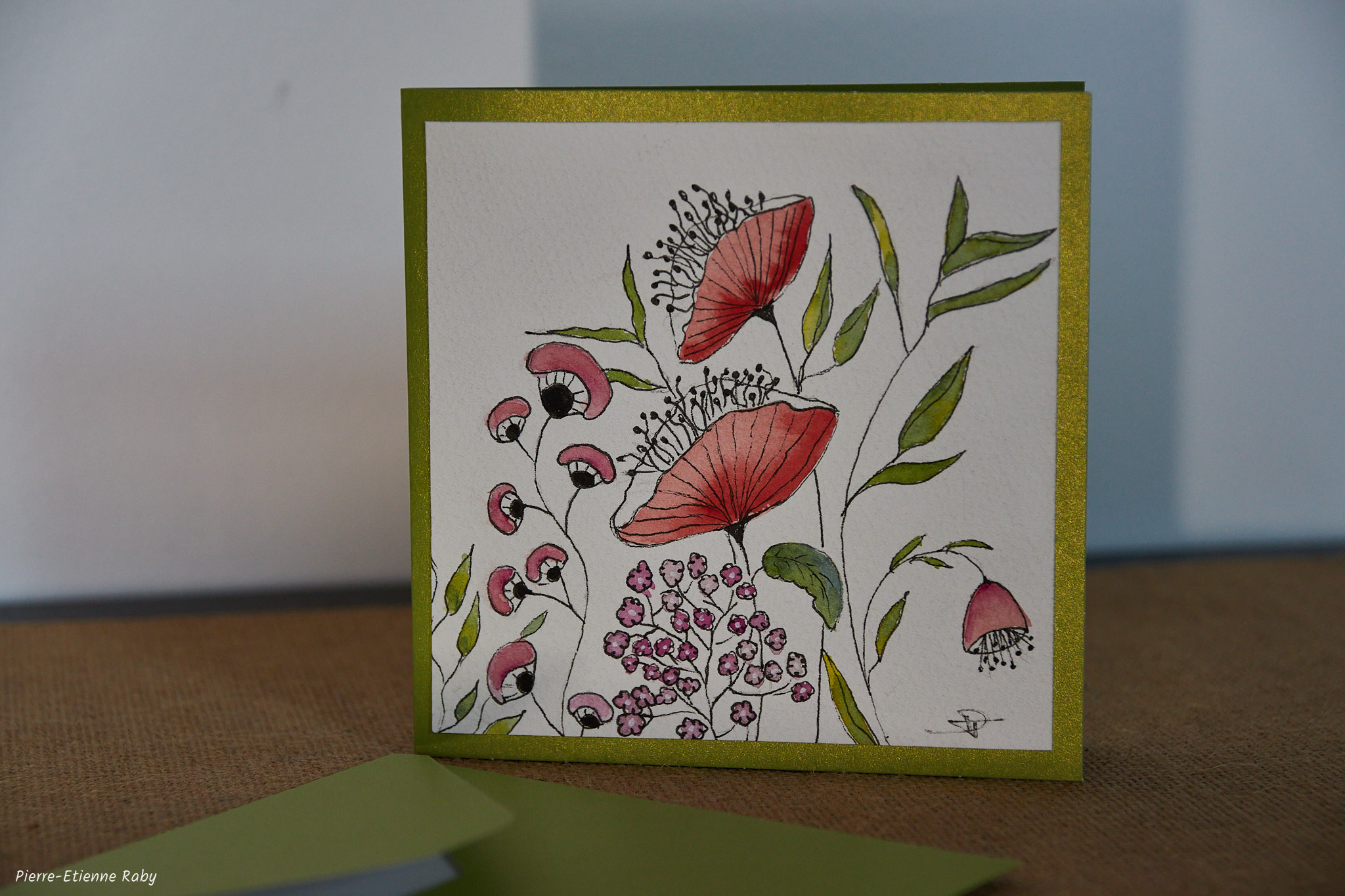 - Ces cartes sont des œuvres uniques, pas de retirage, elles vous sont proposées avec enveloppe.